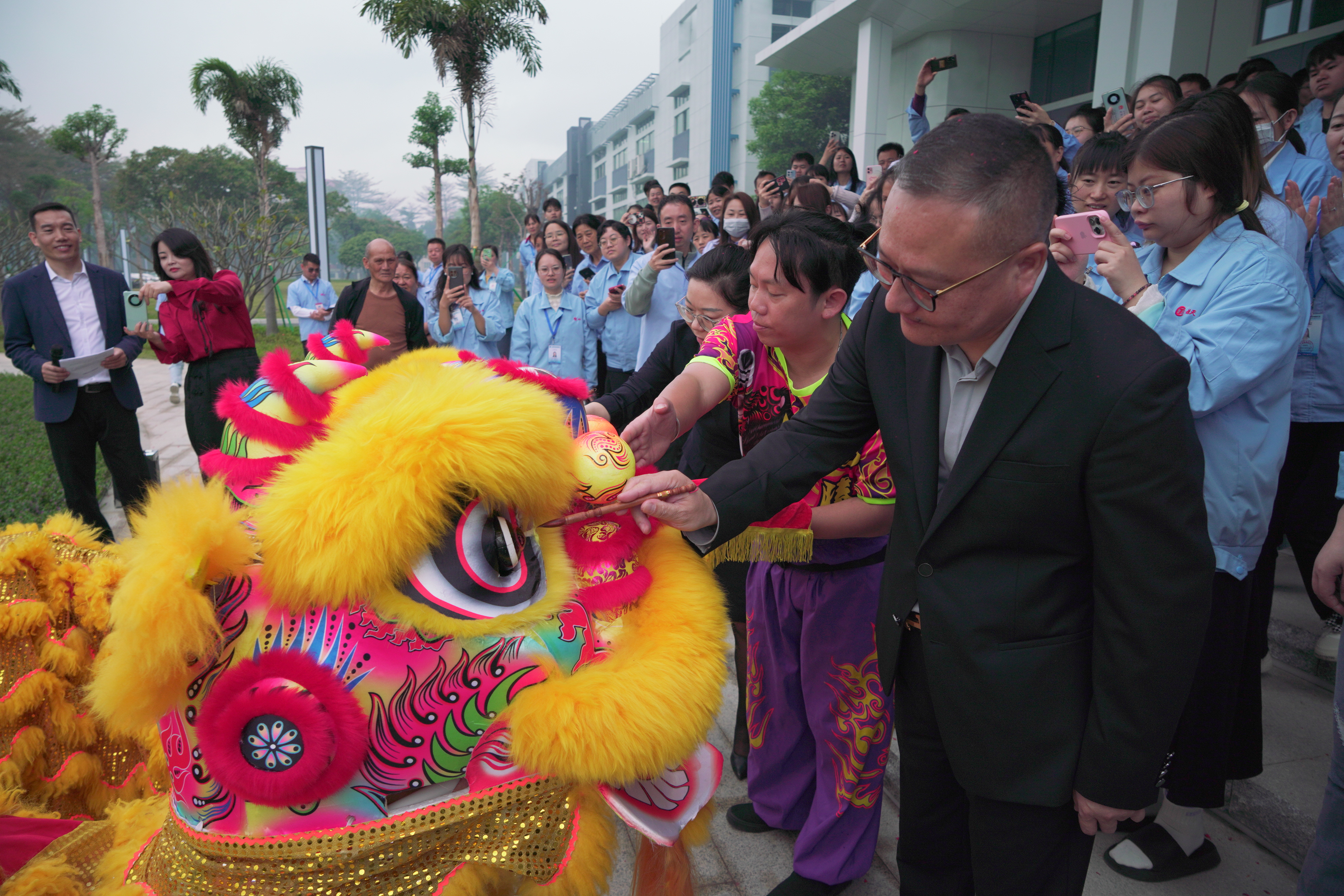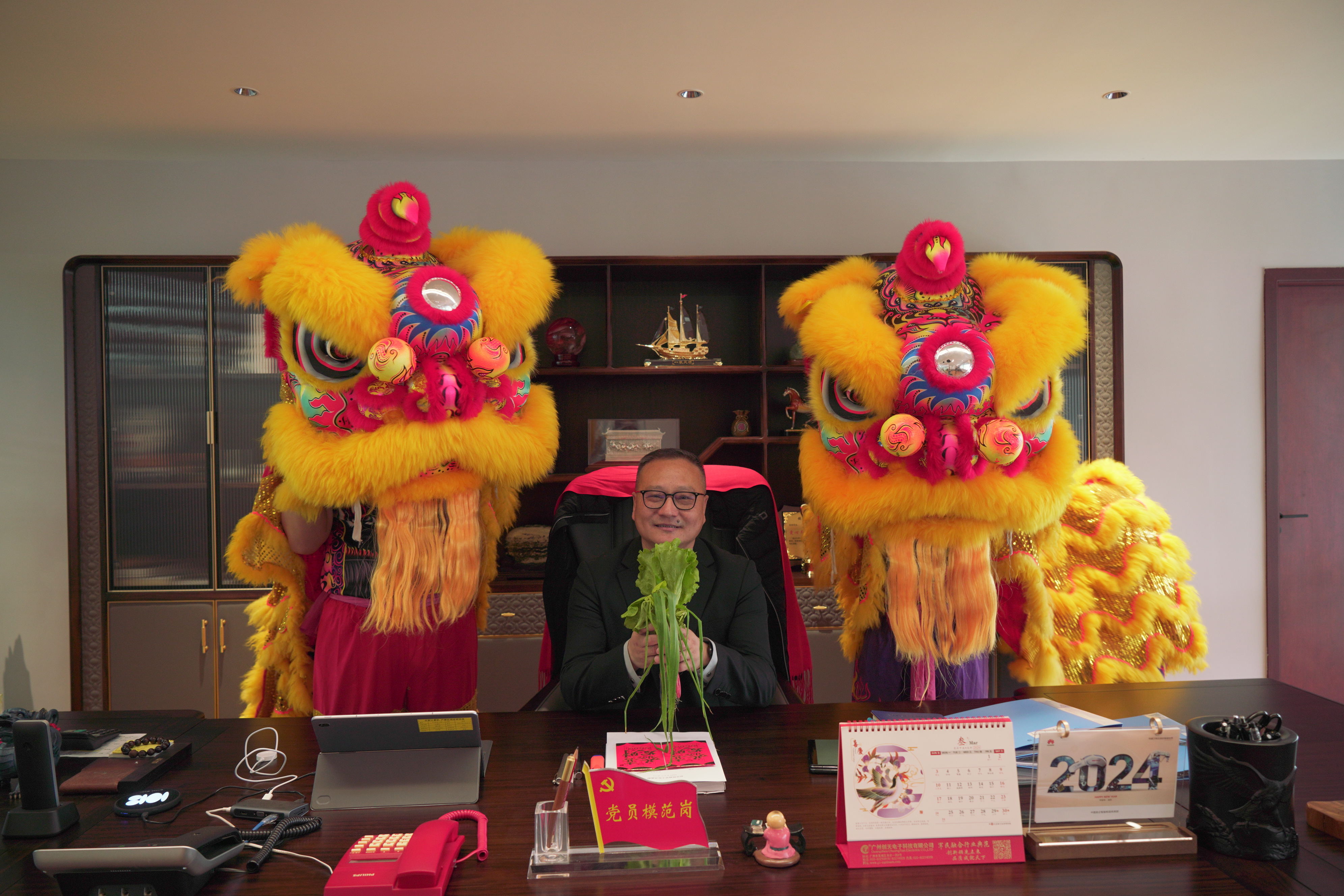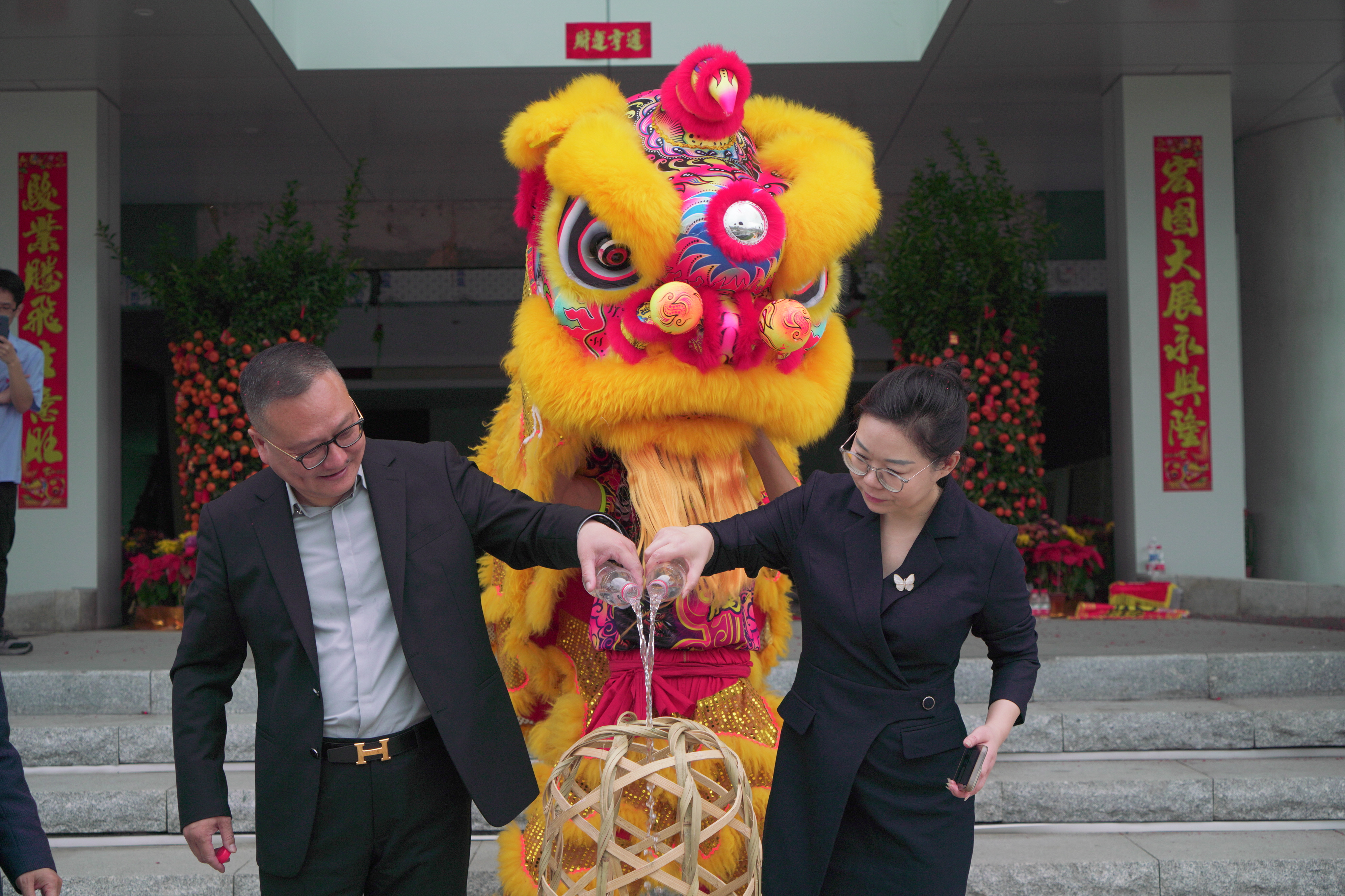 11點(diǎn)18分,禮炮震耳,鑼鼓齊鳴,醒獅起舞共歡騰,采青送福賀開(kāi)工。
